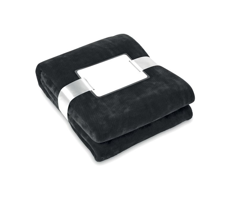 Patura din polar de 280 gr/m2. Stransa cu funda si prevazuta cu o eticheta care poate fi imprimata