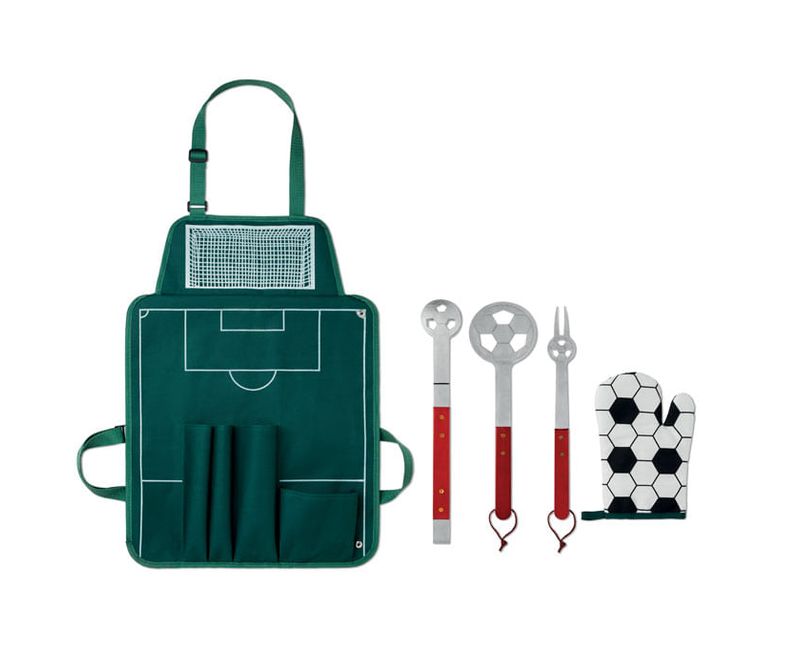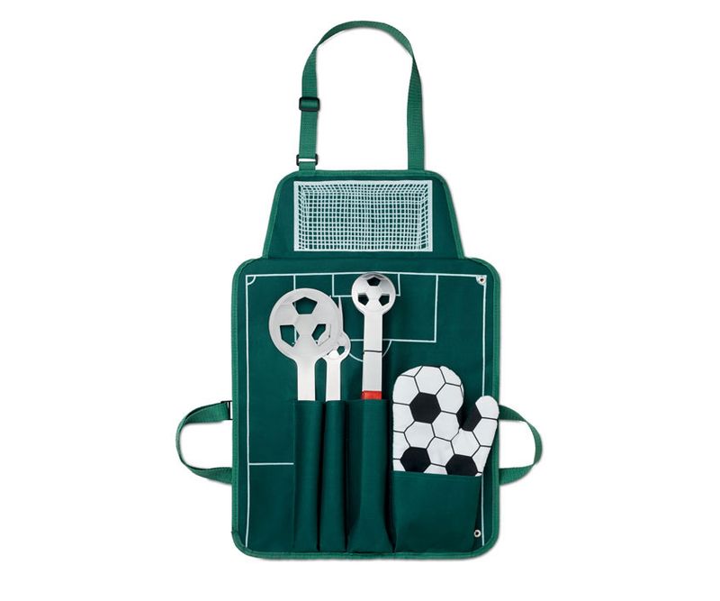 Sort din poliester 600D, pentru gratar, cu 3 ustensile si 1 manusa.