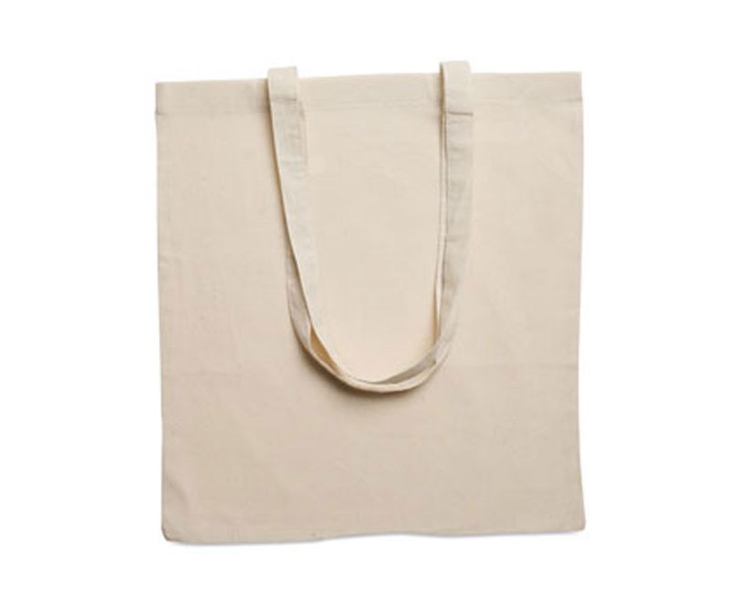 Sacosa de cumparaturi din bumbac 140 gr/m² cu manere lungi. Acest produs este certificat OEKO-TEX® STANDARD 100.