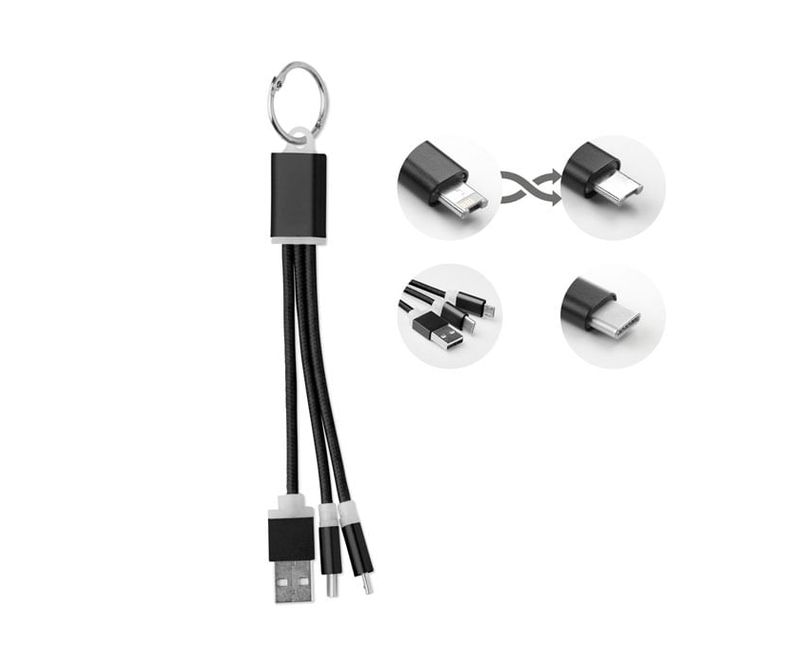 Breloc cu cablu de incarcare USB-A pana la Micro-B (mufa 2 in 1) si tip C.