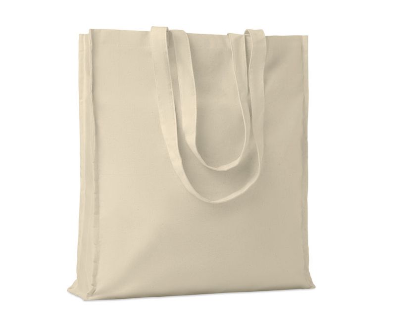Sacosa de cumparaturi din bumbac, cu manere lungi si clini.140 gr/m². Acest produs este certificat OEKO-TEX® STANDARD 100.