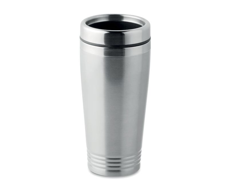 Cana de voiaj, din otel inoxidabil, cu perete dublu, cu capac negru PP. Capacitate: 400 ml.
