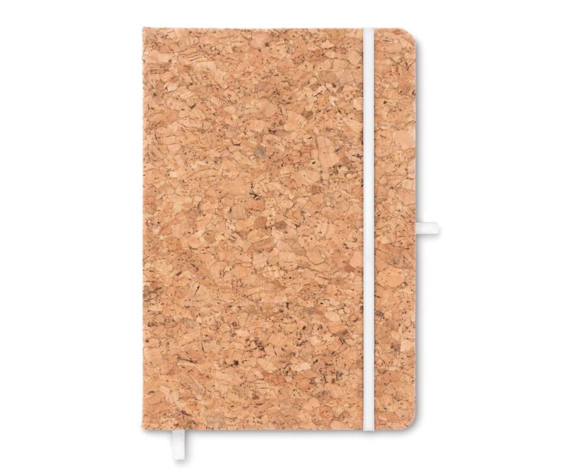 Agenda A5 cu coperta tare din pluta. Bloc lipit. 192 pagini liniate (96 file) din hartie reciclata. Inchidere elastica, panglica asortata si bucla pentru pix. Pluta este un material 100% natural. Din cauza texturii si porozitatii suprafetei, rezultatul final al personalizarii poate varia de la un articol la altul.