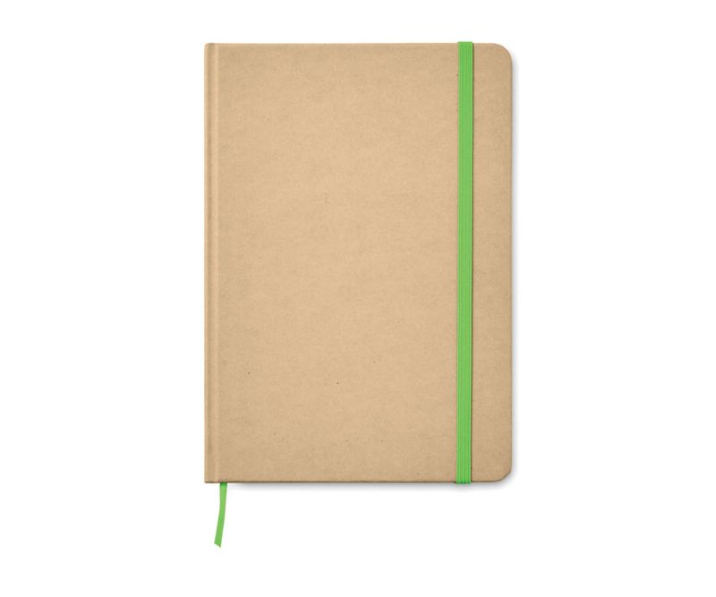 Agenda A5 cu coperta tare din carton reciclat. Bloc lipit. 160 de pagini liniate (80 de file) din hartie reciclata. Inchidere elastica si panglica. FSC®-certified | FSC MIX CREDIT, P7.1, FSC-C213206