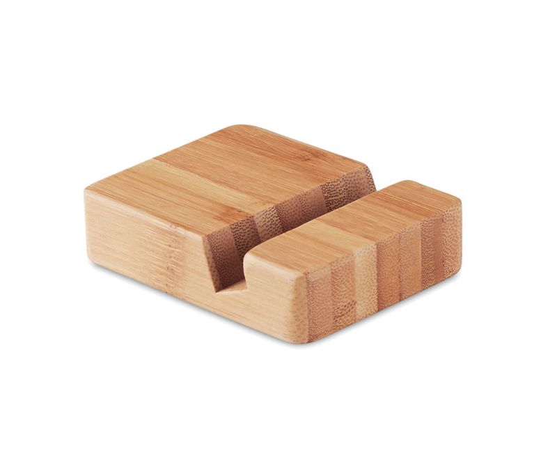 Suport pentru smartphone din bambus. Bambusul este un produs natural, in consecinta pot aparea diferente de culoare, dimensiune sau desen.