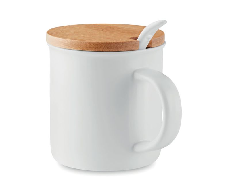 Cana din portelan, cu lingurita si capac din bambus. Cutie individuala. Capacitate 380 ml. Bambusul este un produs natural, in consecinta pot aparea diferente de culoare, dimensiune sau desen.