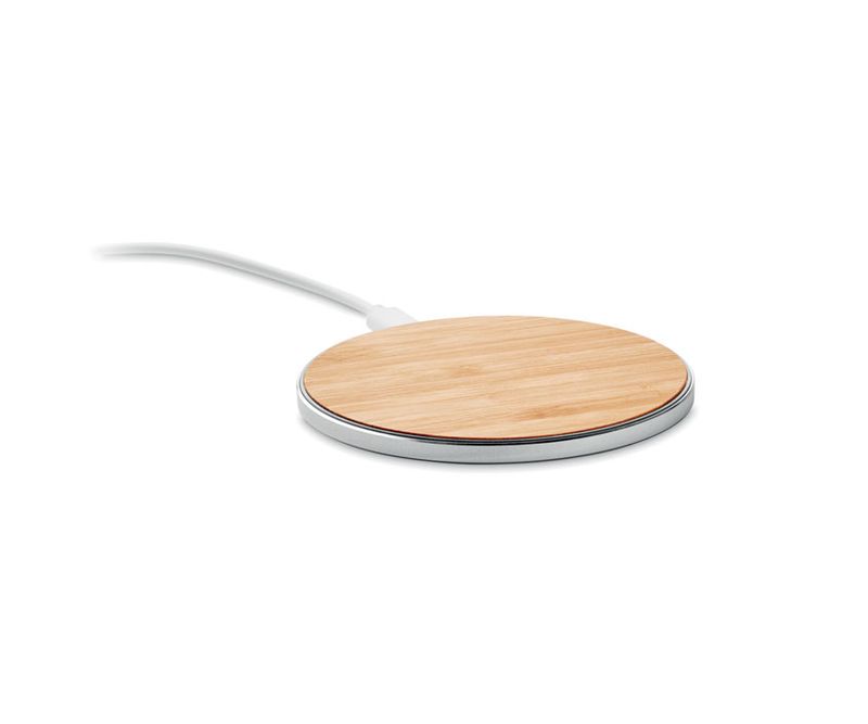 Incarcator wireless rapid in bambus si aluminiu. Lumina albastra la incarcare. DC9V/1.1A (10W). Bambusul este un produs natural, astfel pot aparea diferente la personalizare.
