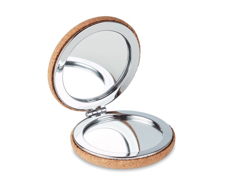 Oglinda compacta dubla, capac cu finisaj din pluta. Pluta este un material natural, avand in vedere structura si suprafata poroasa, printul pe anumite produse poate fi diferita.