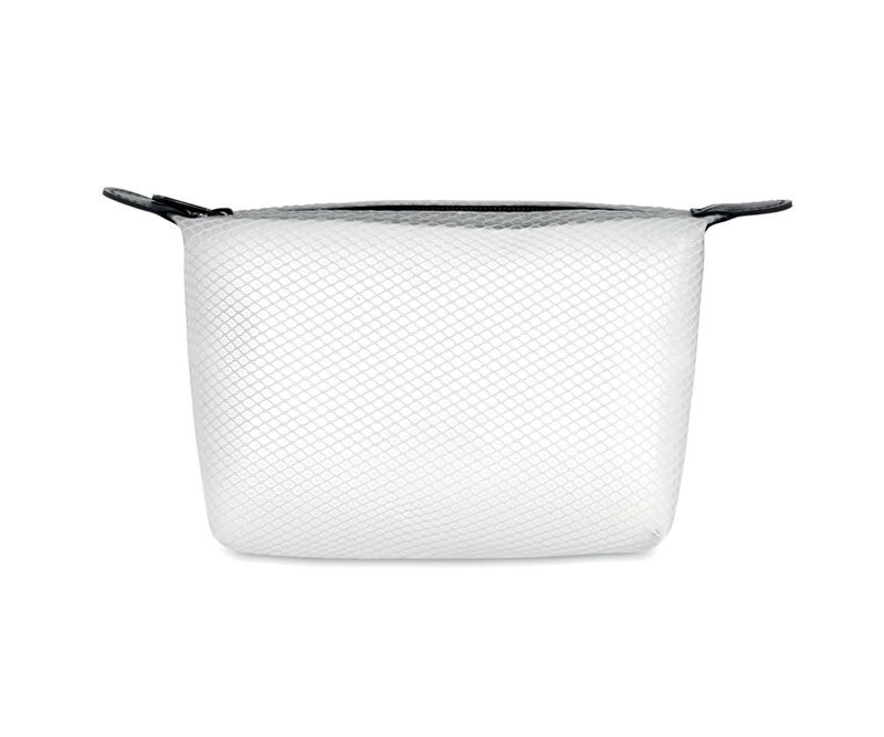 Geanta toaleta din plasa transparenta EVA cu fermoar negru.