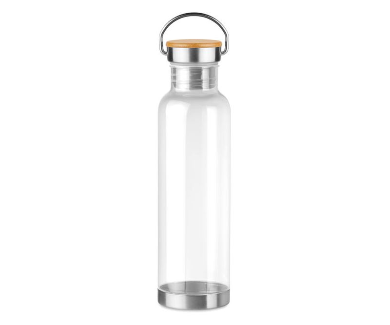 Sticla de tritan de 800 ml, cu fund din inox si capac cu parti din bambus. Bambusul este un produs natural, in consecinta pot aparea diferente de culoare, dimensiune sau desen. Fara BPA. Nu este recomandata pentru bauturile carbogazoase. Fara scurgere.