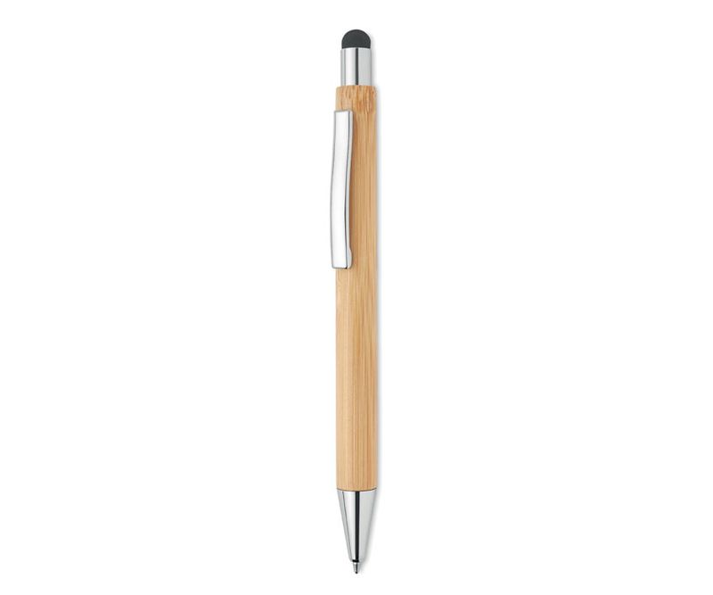 Pix cu buton, cu capat tactil, din bambus si crom lucios. Mina albastra. Bambusul este un produs natural, astfel pot aparea diferente la personalizare. FSC®-certified | FSC 100%, N5.7, FSC-C213206