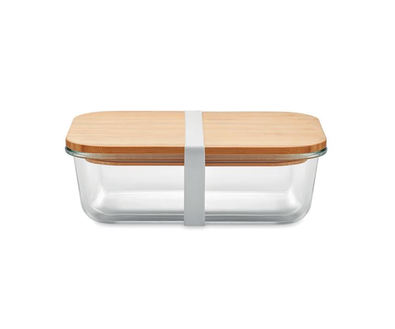 Cutie de pranz din sticla, cu capac de bambus si banda de silicon. Capacitate 800 ml. Bambusul este un produs natural, astfel pot aparea diferente la personalizare.