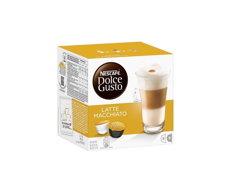 Acest caffe latte „rasturnat” are si un mic truc: un strat consistent de lapte, peste care se adauga un strat de cafea neagra, creand un contrast uimitor, finisat cu o tusa de lapte spumos. Cu textura densa si rafinata, cafeaua Nescafe Dolce Gusto Latte Macchiato este finisata cu un strop elegant de crema inchisa la culoare, semnatura cunoscuta a acestei bauturi.