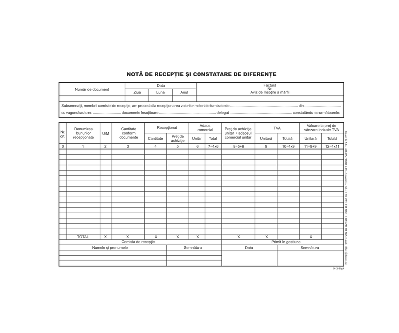 Carnetul contine 50 de seturi a cate 2 tipizate nepersonalizate, NIR cu TVA si constatare diferente, format A4, hartie autocopiativa.Caracteristici generale
