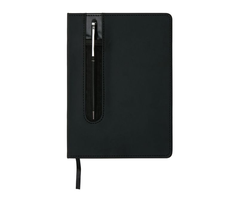 Caiet A5 din PU cu pix negru – 160 coliO combinație elegantă și practică, ideală pentru birou, școală sau cadouri speciale. Acest set include un caiet A5 cu husă pentru pix și un pix negru metalic cu stylus la un capăt, ambalat într-o cutie cadou, perfect pentru prezentări sau cadouri rafinate.