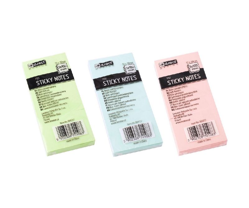 Notes adeziv 51 x 38 mm culori asortate 3/set D.Rect