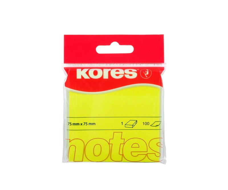 Notes adeziv din hartie. Este non-permanent. Ideal pentru memento-uri si mesaje. Disponibil in 4 variante de culori neon: verde, rosu, portocaliu si galben. Nu lasa urme sau semne atunci cand este dezlipit. Dimensiune: 75 x 75 mm. Ambalare: 100 file/buc.