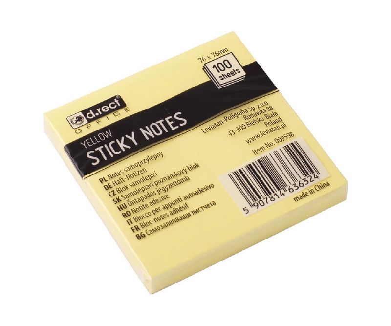 Notițe adezive galbene - 100 de foi pe bloc 76x76 mm - formulă specială de lipici care permite lipirea și dezlipirea repetată a unei singure notițe
