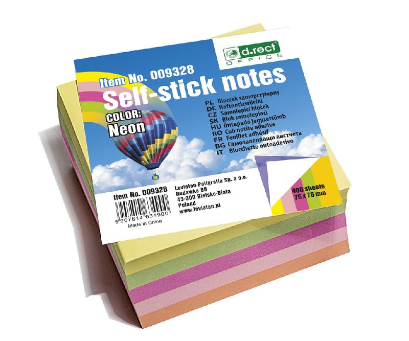 Notes cub adeziv 76 x 76 mm neon 400 coli D.Rect