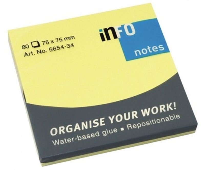 Notite adezive Infonotes, 75x75mm, 80file, galben briliant