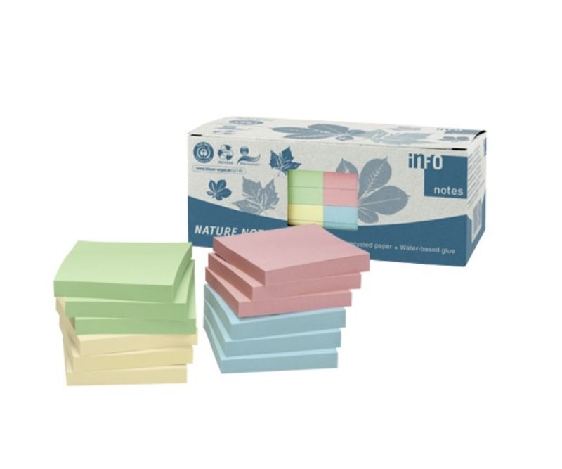 Notite adezive reciclate InfoNotes, 75x75mm, 100file, 3 culori, 12buc/cut.