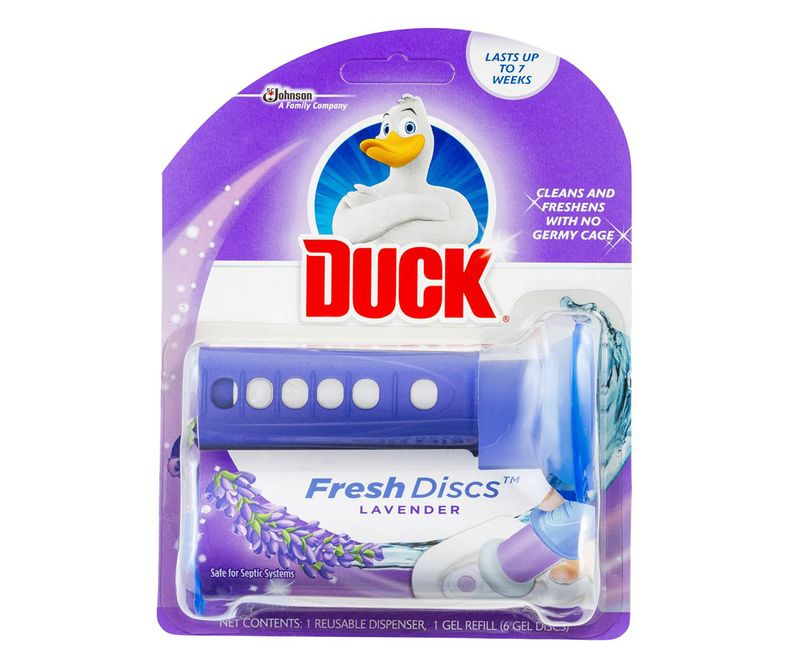 Duck ofera solutii superioare pentru curatenia de fiecare zi, combinand eficienta in curatare cu mirosurile placute. Odorizantul pentru vas toaleta Fresh Disc Duck ajuta ca toaleta sa fie curatata si parfumata intr-un mod mai simplu si mai igienic, fara a fi nevoie sa va atingeti de o carcasa de plastic plina de microbi.