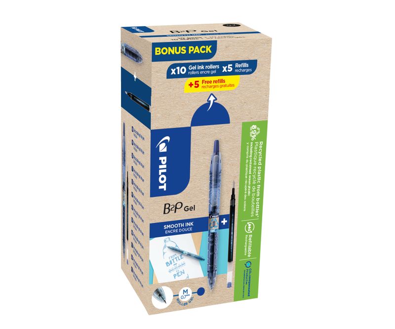 Prin producerea unui roller cu gel Begreen B2P din plastic reciclat, Pilot reduce amprenta de carbon a acestui roller comparativ cu același roller produs fără plastic reciclat. Dar nu se oprește aici, prin reîncărcarea acestuia de cel puțin 3 ori, ați compensa și emisiile de dioxid de carbon. De la fabricare până la sfârșitul duratei de viață a produsului, se estimează că prin cumpărarea acestui roller Begreen și prin reîncărcarea acestuia de 3 ori se reduce impactul total asupra mediului cu 69% *** comparativ cu achiziționarea a încă 3 rollere noi.