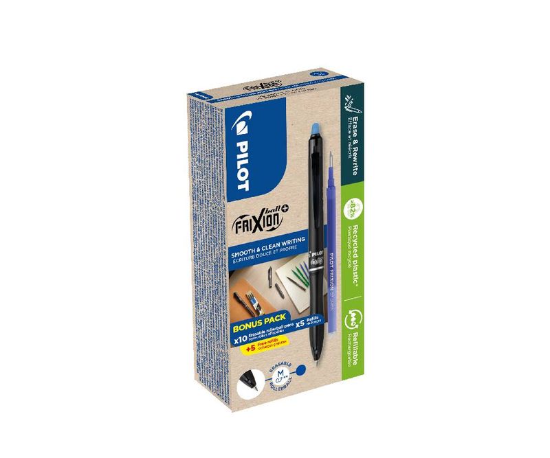 PILOT FriXion Ball+ este conceput pentru cei care urmăresc soluții de scriere versatile, care îmbrățișează fără probleme modificările. Permite eficiența și scrierea fara greseli pentru a satisface așteptările utilizatorilor, datorită cernelii sale termosensibile.