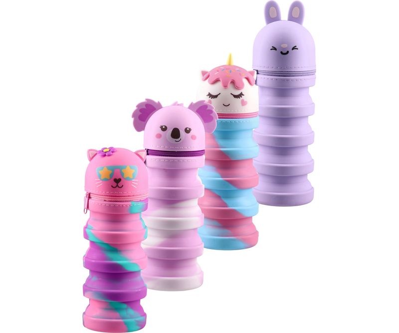 Adaugă un strop de veselie pe bancă și în ghiozdan cu penarul din silicon Goammy120 mix! Realizat din material flexibil și rezistent, acest penar are un design jucăuș în formă de personaje simpatice (animăluțe și figurine), fiind alegerea perfectă pentru copii.