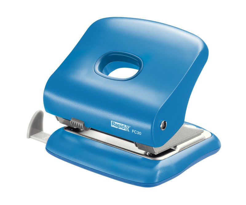 Perforator plastic Rapid FC30 – 2 perforații, 30 coli, albastru deschis