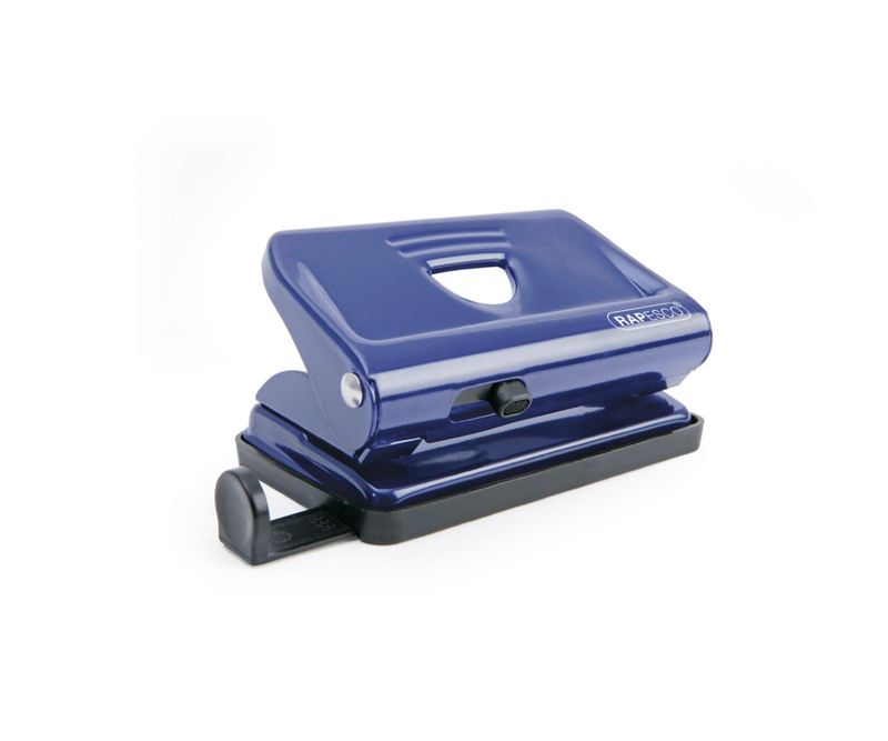 Perforatorul metalic Rapesco 820 are o capacitate de perforare de 12 coli (80 gsm) cu 2 perforatii. Produsul prezinta o constructie solida din metal, ghilotine intarite, maner pentru blocare si baza din metal cu tavita din cauciuc pentru confetti, usor de utilizat. Fereastra de personalizare permite identificarea usoara.