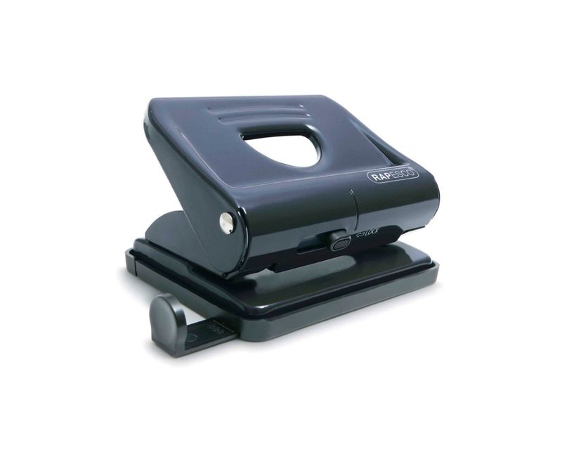 Perforatorul metalic Rapesco 820 are o capacitate de perforare de 22 de coli (80 gsm) cu 2 perforatii. Produsul prezinta o constructie solida din metal, ghilotine intarite, maner pentru blocare si baza din metal cu tavita din cauciuc pentru confetti, usor de utilizat. Fereastra de personalizare permite identificarea usoara.