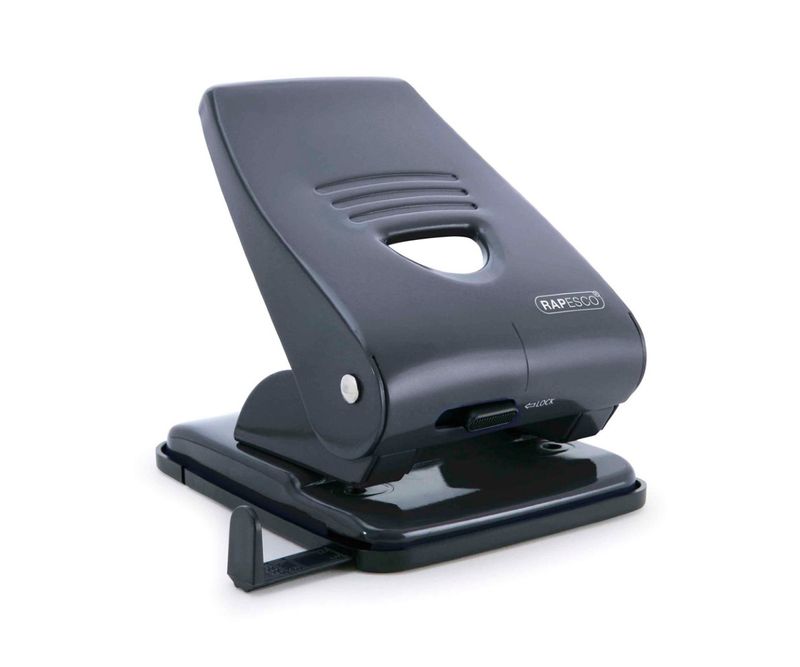 Perforatorul metalic Rapesco 835 are o capacitate de perforare de 40 de coli (80 gsm) cu 2 perforatii. Produsul prezinta o rigla de ghidaj pentru hartie si o tavita cauciucata pentru confetti, cu deshidere usoara. Are o constructie solida, dar este usor si ergonomic pentru a fi folosit zilnic cu un minim de efort. Componentele interioare sunt confectionate din metal si, alaturi de ghilotinele intarite, iti vor asigura functionarea corecta a perforatorului pentru mult timp