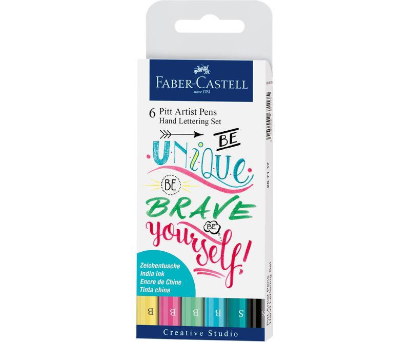 Desenul in cerneala are o traditie foarte lunga. Cerneala a reprezentat intotdeauna un mediu interesant pentru artisti si artisti graficieni, care da expresivitate si durabilitate desenelor si poate fi, de asemenea, combinat cu alte tehnici de desen. Faber-Castell a combinat avantajele cerrnelii cu cele ale unui instrument modern, usor de utilizat - markerul cu pensula Pitt. Setul contine 6 markere in culori pastel: S-0.3mm in 2 culori si B-varf pensula in 4 culori, ideale pentru desene caligrafice. Cerneala cu PH neutru si rezistenta la lumina. Dupa uscare culorile sunt rezistente la apa si nu se intind pe hartie.