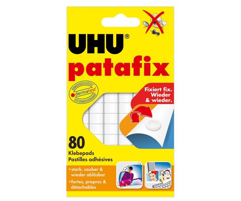 Tablete de adeziv pentru lipirea bucăţilor de hârtie şi obiectelor de mici dimensiuni pe marea majoritate a materialelor, inclusiv pe lemn, plastic, sticlă, metal, porţelan şi multe altele.