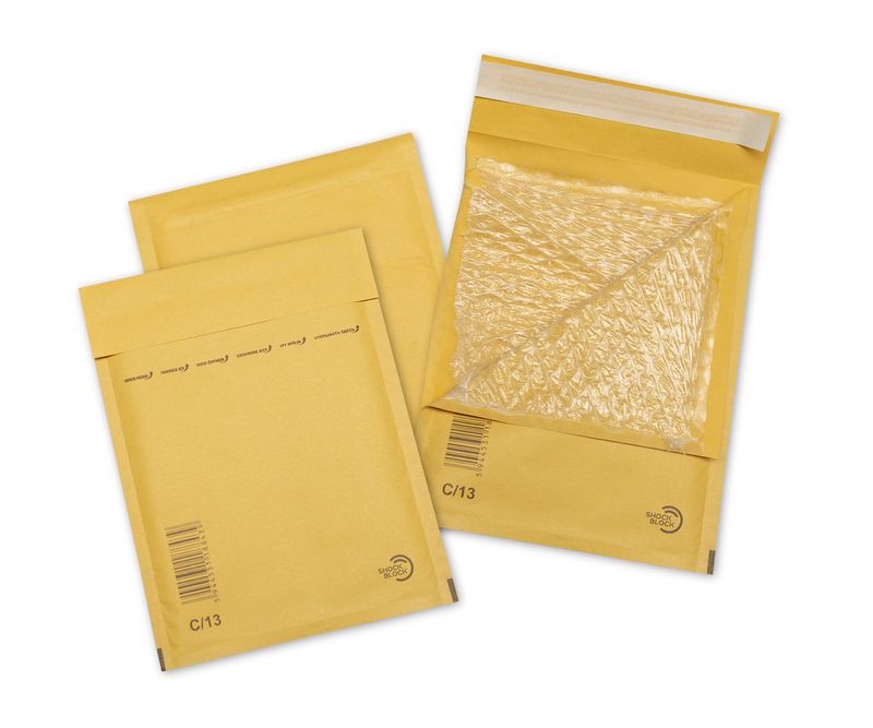 Plicuri antisoc realizate din hartie cerata kraft galben auriu de 90 g/mp, captusite pe interior cu folie de polietilena de joasa densitate cu bule pentru protectia produselor expediate contra socurilor si a umezelii. Diametrul bulelor este de 8 mm, inaltimea maxima a bulelor de 5 mm si greutatea de 50 mg/mp. Folia cu bule este lipita pe intreaga suprafata interioara a plicului ceea ce asigura o foarte buna protectie a continutului acestuia.