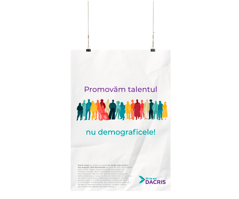carton DCM de 200 g/mp, posterul are o structură rezistentă și un finisaj elegant. Tiparul