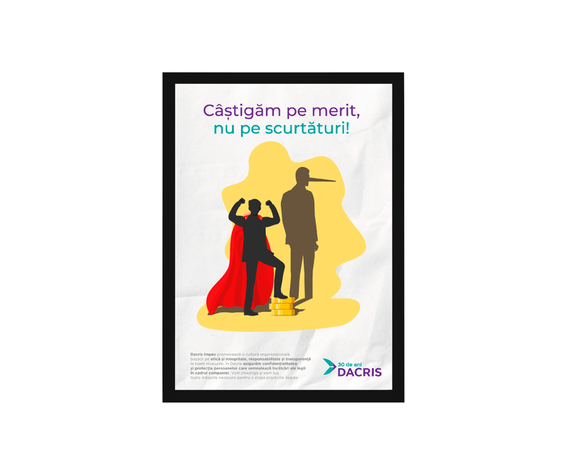 carton DCM de 200 g/mp, posterul oferă o structură solidă și un finisaj elegant. Tiparul