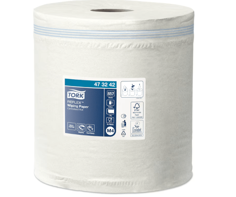 Prosopul de hârtie Tork de culoare albă este ecologic și eficient pentru curățarea mâinilor, a sticlei și a geamurilor. Produsul este compatibil cu dispenserul Tork sau alte tipuri de dispenser cu derulare centrală.