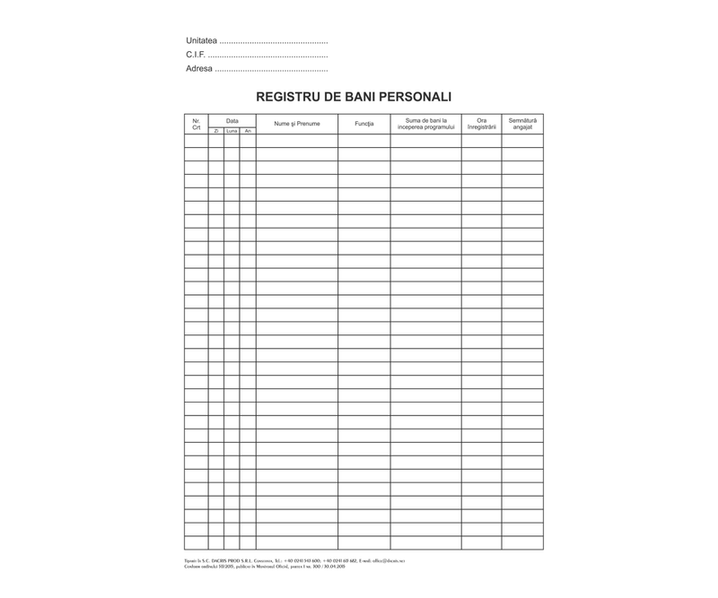 Carnetul contine 100 de tipizate nepersonalizate, format A4, hartie offset.