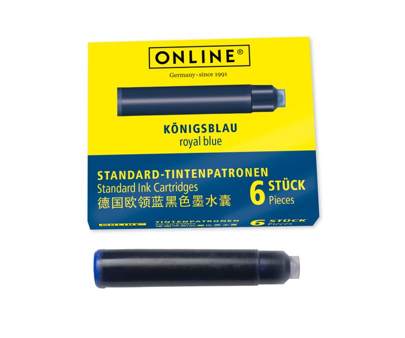 Rezervă de cerneală standard, albastru royal, 6 buc/set, destinată stilourilor compatibile cu cartușe standard. Cerneala oferă o scriere clară și uniformă, fiind potrivită pentru utilizarea zilnică la școală, birou sau acasă.