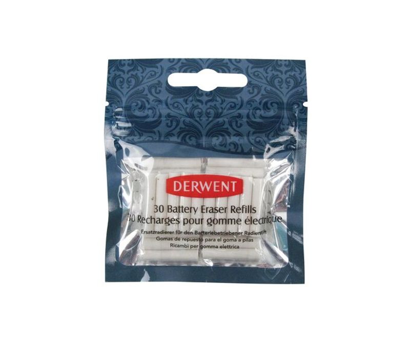 Pachet de 30 de rezerve utilizare cu radiera electrica Derwent reincarcabila, include 15 rezerve de 5 mm si 15 rezerve extra fine de 2.4 mm. Guma compactă, robusta, care poate fi utilizata pentru a sterge suprafete foarte mici pe lucrarile de arta si poate fi, de asemenea, utilizată pentru a crea modele și forme, precum și pentru a fi un instrument de desen util.