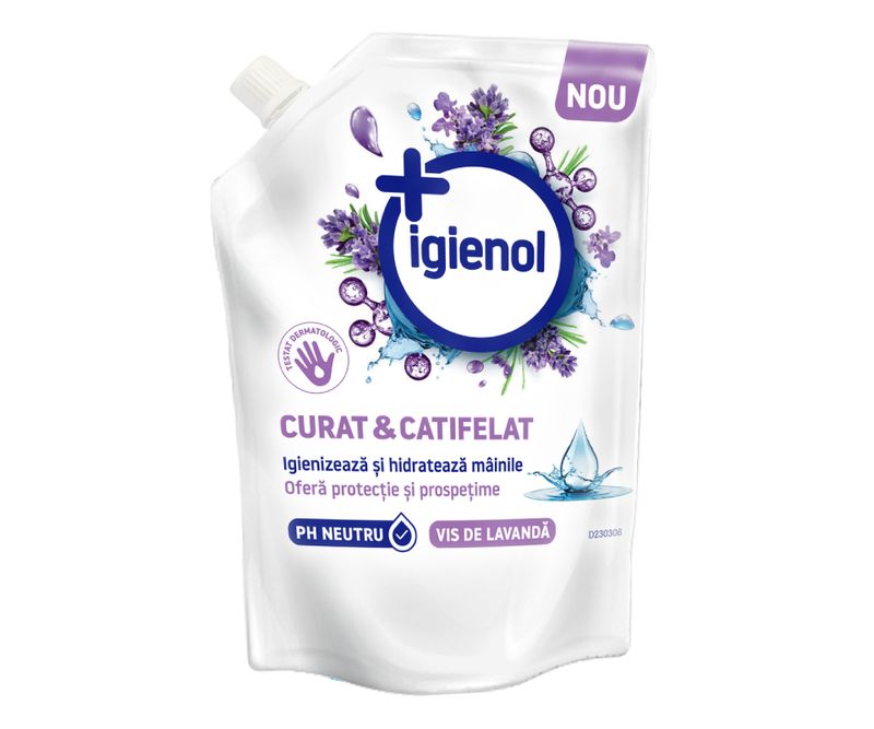 Rezerva sapun lichid pentru maini antibacterian cu parfum de Lavanda, Igienol 500mL