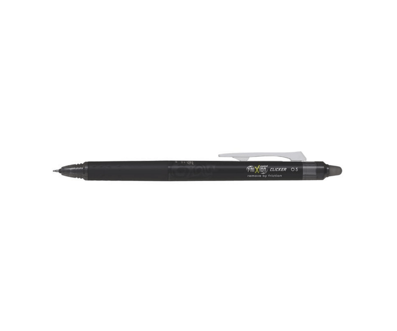 Scrie… şterge… rescrie cu FriXion în versiune retractabilă! Şterge curat, fără a lăsa urme folosind radiera care prin frecare generează căldură. Utilizează aceaşi cerneală pentru a scrie şi rescrie. Folosind o nouă cerneală, patentată de PILOT, FriXion Ball Clicker continuă tradiţia de a revoluţiona scrisul. A nu se folosi pentru semnături sau scrierea pe documente legale, pe colile de examen sau alte documente unde este necesară folosirea cernelei permanente.