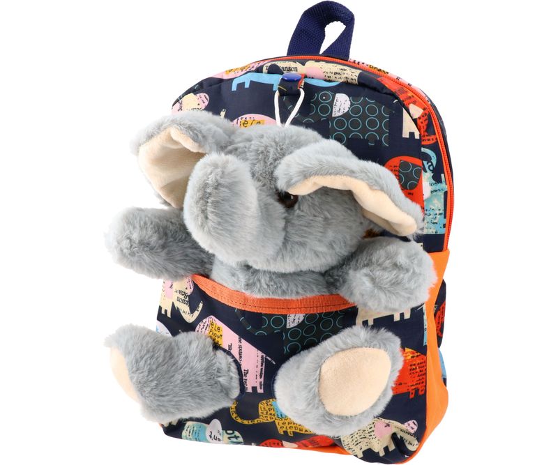 Rucsac pluș cu jucărie atașată – Design elefant, albastru