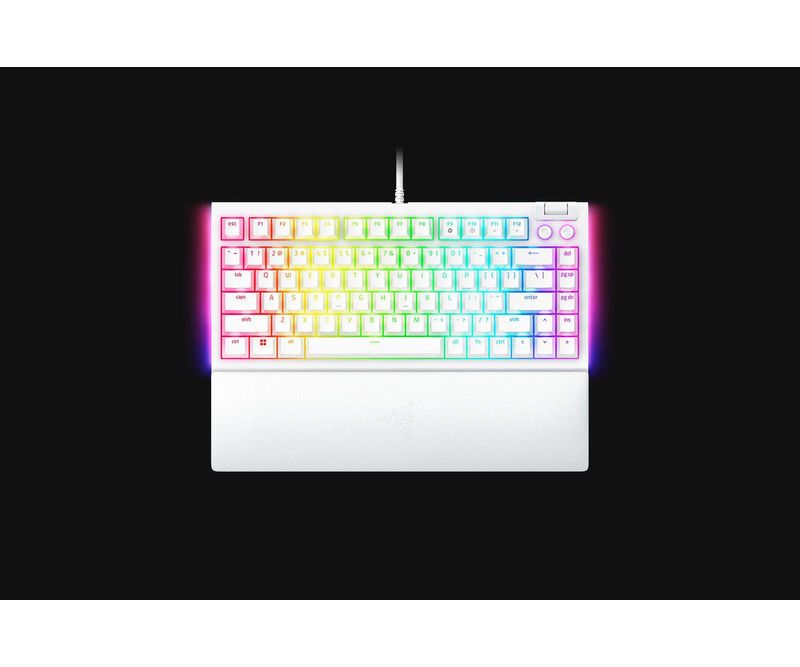Tastatura mecanica gaming BlackWidow V4 75%, taste ABS, layout US, iluminare RGB, cu 6 butoane customizabile, suport pentru incheietura magnetic, alb