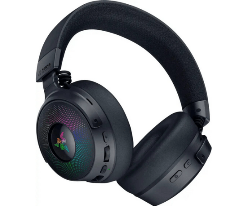 Casti Razer Kraken V4 Pro, wireless, bluetooth, cu fir, frecventa raspuns 20 Hz – 28 kHz, conectivitate wireless: 2.4 GHz Wireless prin OLED Control Hub sau Bluetooth 5.3, cu fir USB-A sau 3.5mm, microfon retractabil Razer™ HyperClear Super Wideband Mic, iluminare Razer Chroma™ RGB, autonomie pana la 50h (feedback haptic si iluminare oprite, mod wireless), autonomie pana la 45h (feedback haptic si iluminare oprite, mod wireless & bluetooth activate simultan), autonomie pana la 13h (feedback haptic si iluminare pornite, conexiune wireless), negru