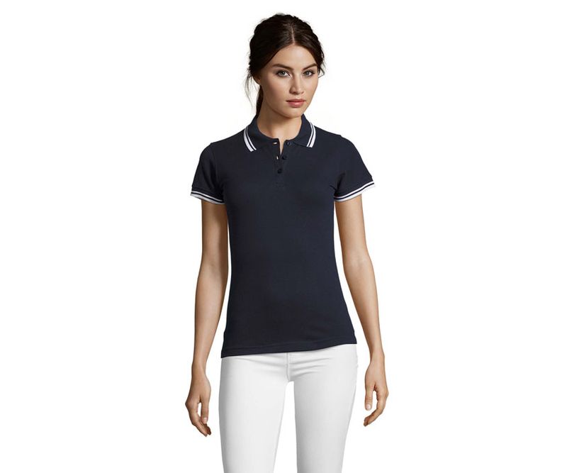 SOL'S PASADENA WOMEN, CAMASA POLO PENTRU FEMEI, 100% bumbac Ringspun PIQUE 200, guler si mansete din rib 1x1, banda de intarire la gat, maneci scurte, dungi contrastante la guler si mansete, placket cu 3 nasturi ton pe ton, croiala ajustata, croita si cusuta, fante laterale, nasture de rezerva pe cusatura interioara. Pentru informatii despre potrivirea marimilor, consultati tabelul de marimi din sectiunea documentatie produs.