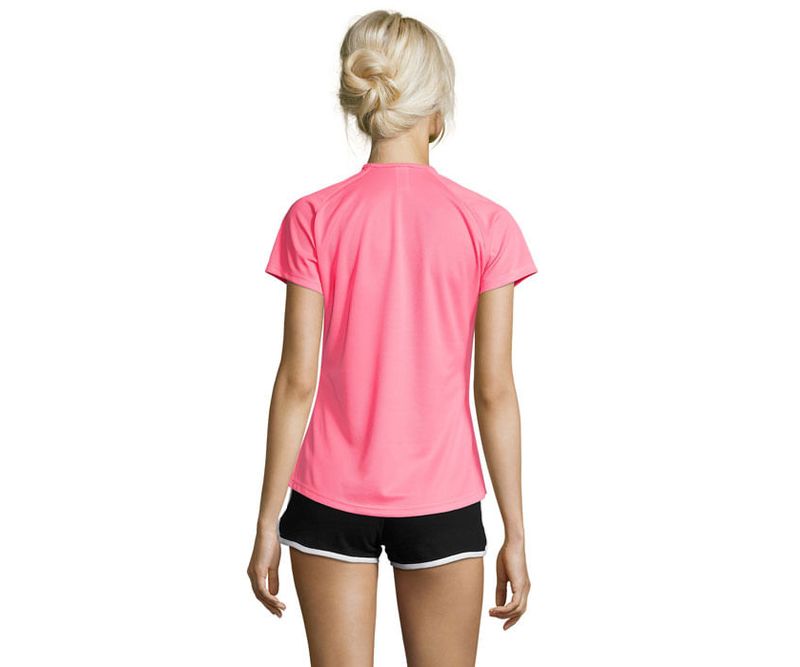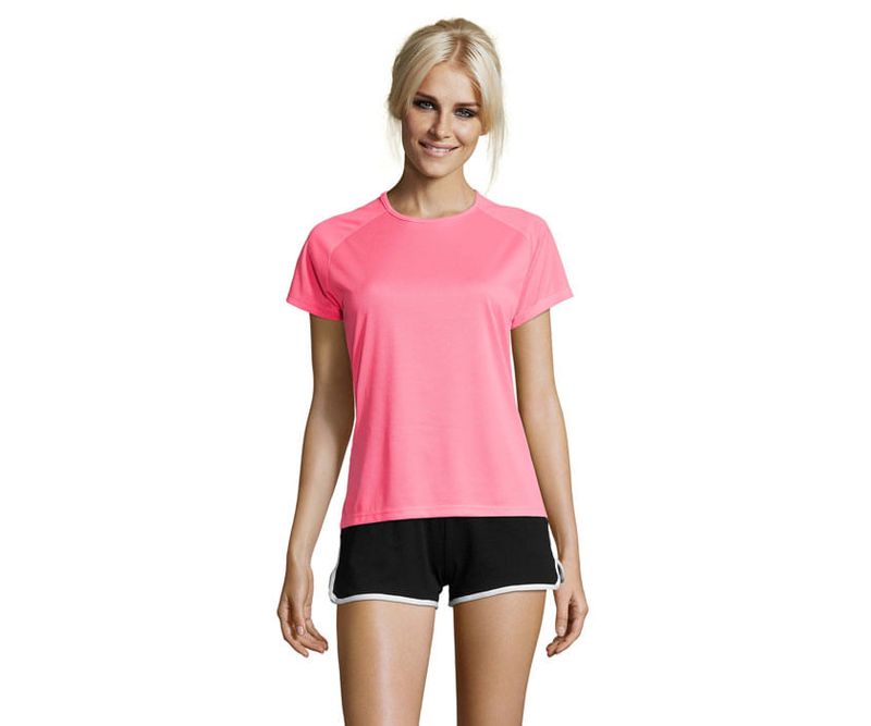 SOL'S SPORTY Women, Tshirt  140g/m² Tricou tehnic pentru femei, din poliester respirabil - Dry fit, cu maneci raglan si cusaturi plate. Acest produs este ideal pentru orice activitate sportiva. Disponibil intr-o gama larga de dimensiuni si culori, inclusiv in culori neon. Guler rotund cu banda dubla, spate alungit. Detalii material: 140g / mp, 100% poliester plasa. Marimi: XS -3XL.