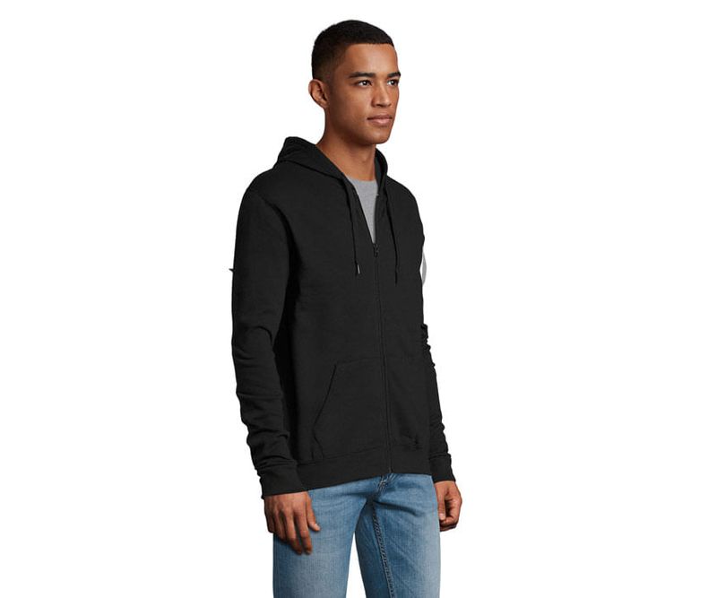 SOL'S STONE Uni, Hoodie 260g/m². Hanorac unisex, cu fermoar complet si buzunar tip marsupiu in fata. Mansete si tiv din elasten reiat, gluga cu snur asortat, cusaturi laterale. Eticheta de marime fara marca. Detalii material: fleece 260g / m² 50% bumbac - 50% poliester, OEKO-TEX®. Dimensiuni: XS-3XL.